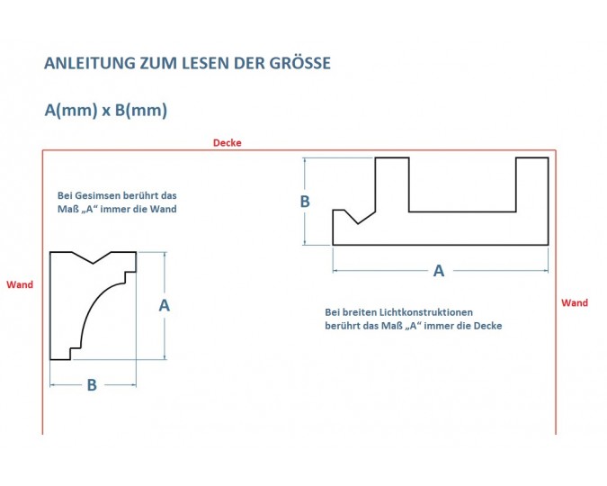 Die LED-Leisten, die Sie in unserem Shop kaufen, sollten auf der Innenseite mit selbstklebendem Aluminiumband gesichert werden. Dies soll verhindern, dass Licht durch das Gesims dringt sowie das Licht in den Raum reflektiert wird.