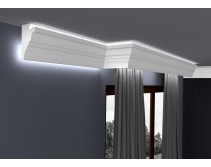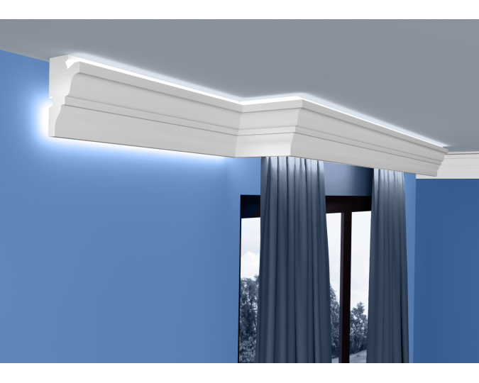 Die LED-Leisten, die Sie in unserem Shop kaufen, sollten auf der Innenseite mit selbstklebendem Aluminiumband gesichert werden. Dies soll verhindern, dass Licht durch das Gesims dringt sowie das Licht in den Raum reflektiert wird.